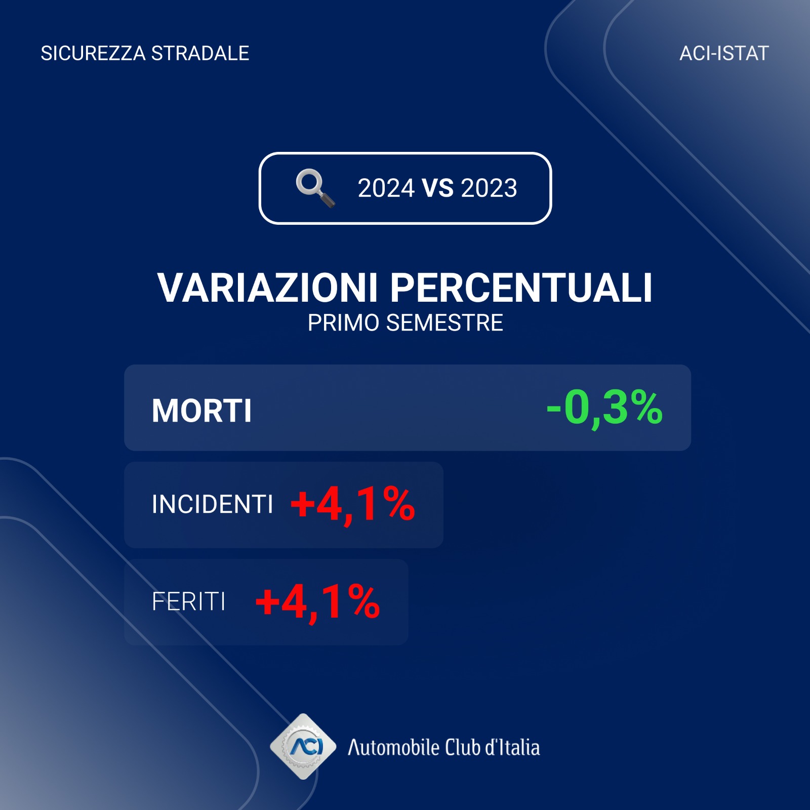 - Il numero di morti in incidenti stradali ammonta a 3.030 (-0,3% rispetto al 2023), quello dei feriti a 233.853 (+4,1%), per un totale di 1364 incidenti stradali (+4,1%). Rispetto al 2019, le vittime e i feriti sono diminuiti (rispettivamente del -4,5% e -3,1%), mentre gli incidenti stradali mostrano un leggero aumento (+0,7%).